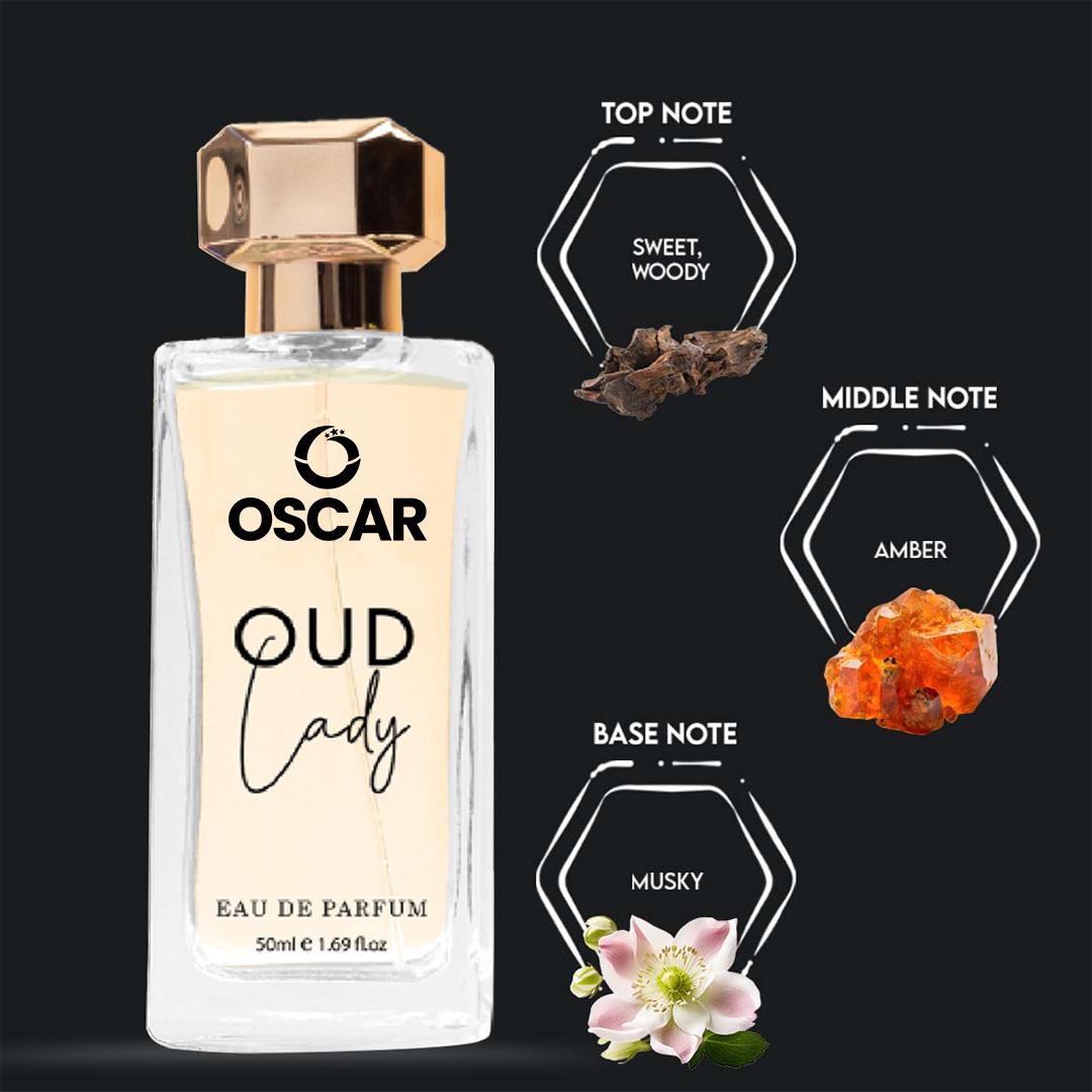 - **Bold and Captivating Fragrance**: OUD Lady EDP, The top notes have Sweet & Woody for an Intense, Rich & Citrusy scent, the middle notes have Amber for a Warm, Powdery & Sweet scent, and the base notes have Musky for a mellow undertones with Fresh scent.
